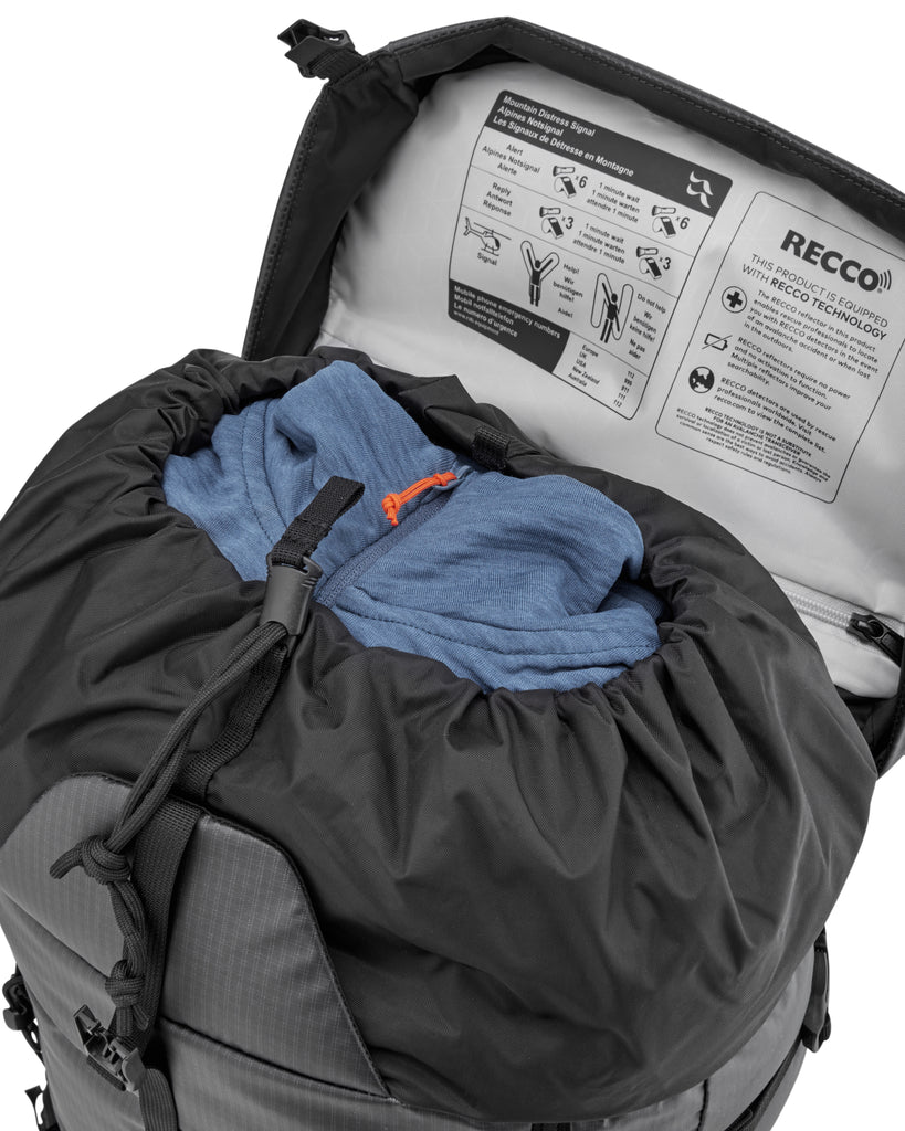 Mochila de aventura vertical de 35 L, ideal para misiones all-mountain, desde ascensos mixtos invernales hasta rutas de roca en verano. Fabricada con un sistema de espalda ajustado, tejido reciclado resistente y tecnología RECCO®, está preparada para entornos alpinos exigentes.